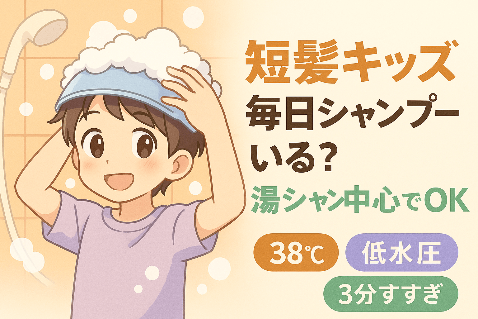 【短髪キッズ】毎日シャンプーいる?→湯シャン中心でOK