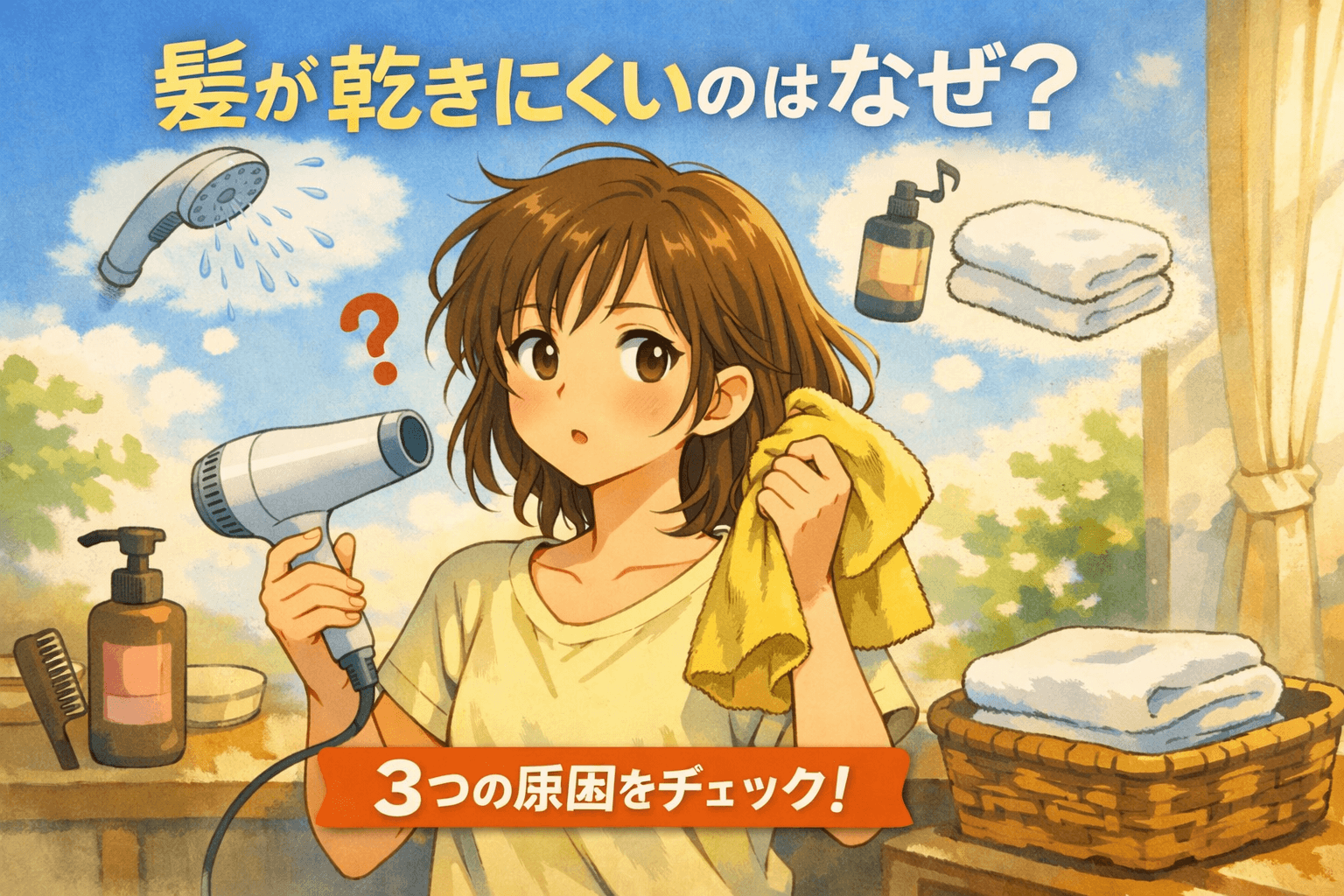 今回は、「髪が乾きにくくなる意外な3つの原因」と解決のヒントをわかりやすくお話しします。